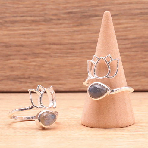 La bague « Fleur de Lotus Labradorite » en argent 925 est une création qui allie protection, intuition et élégance spirituelle. Sa pierre aux reflets irisés en fait un bijou puissant et mystérieux, idéal pour accompagner le porteur dans sa quête d’équilibre énergétique, de clarté intérieure et de protection émotionnelle.