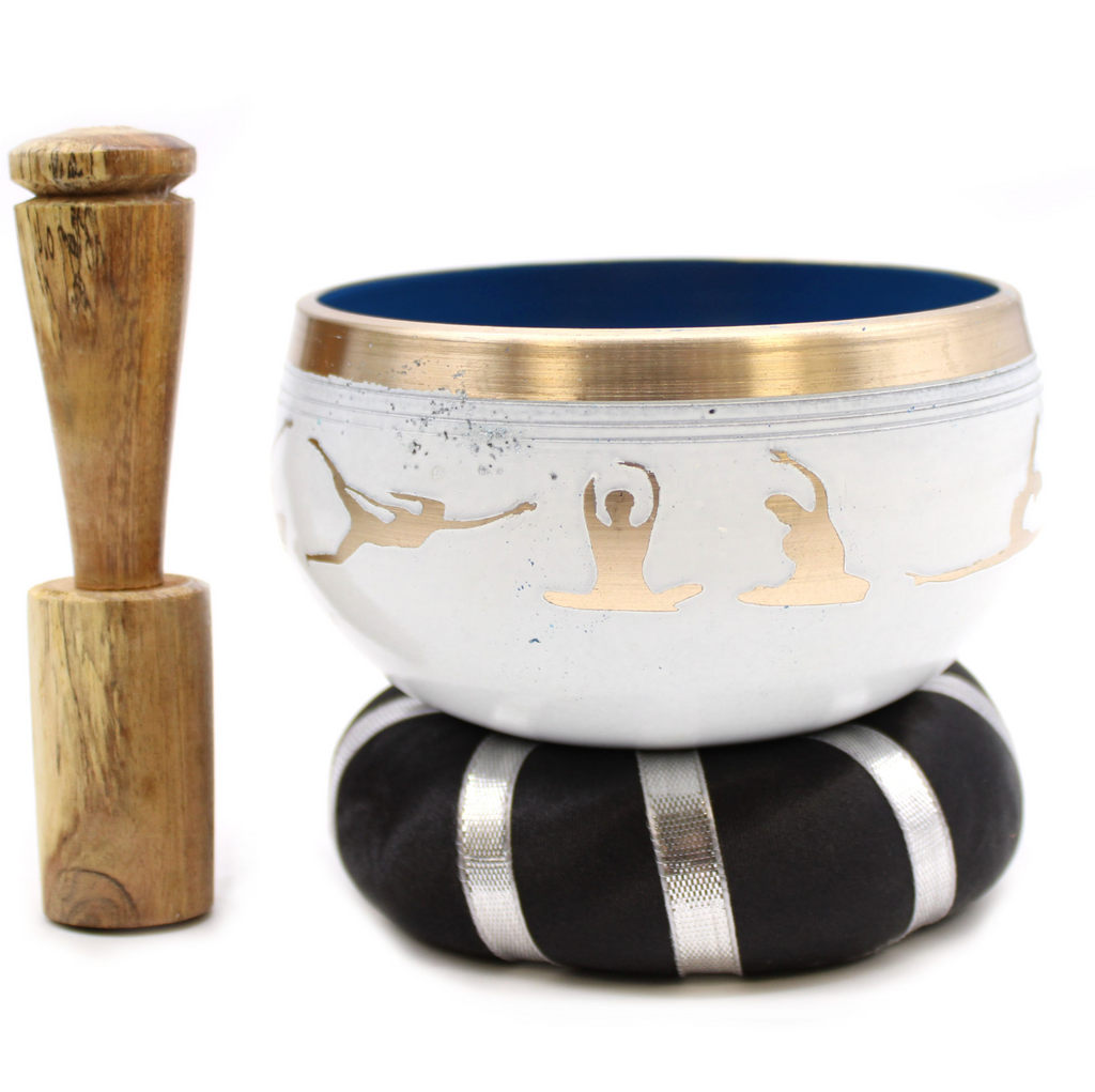 Harmoniza tu cuerpo y tu mente con este conjunto de bol tibetano de latón, con un diseño inspirador de yoga y danza. ¡Pide ahora para transformar tus sesiones de meditación y yoga en una experiencia profundamente relajante y espiritual.