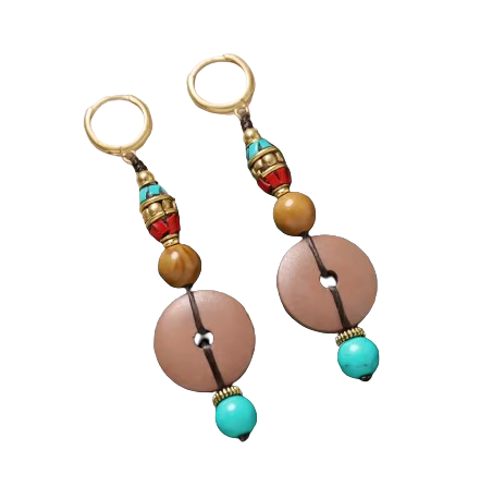 Pendientes de cobre y piedras naturales: turquesa, coral rojo, ojo de tigre, madera natural y cobre dorado