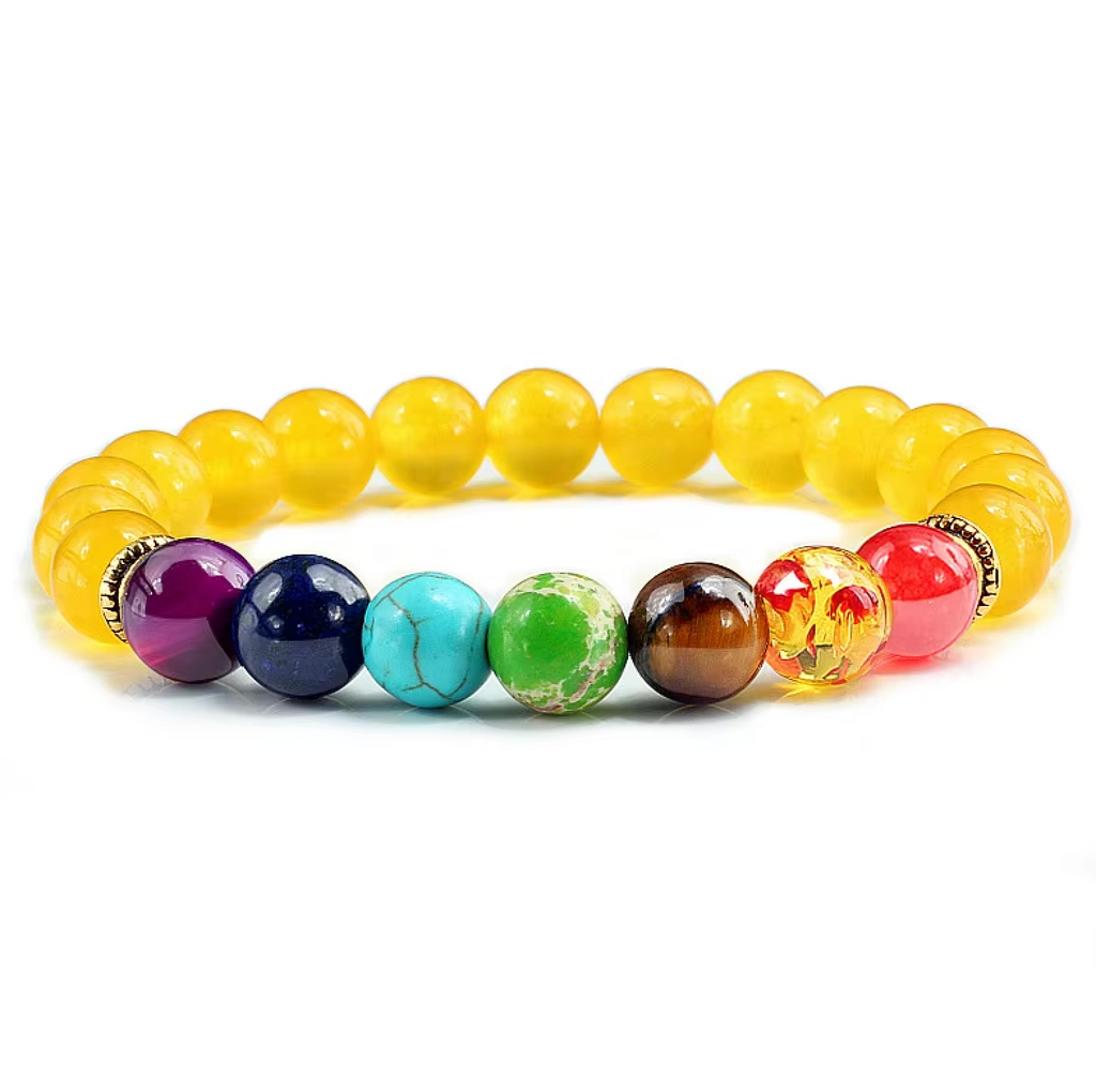 Les bienfaits du Bracelet 7 Chakras en Agate et Cristal Jaune :