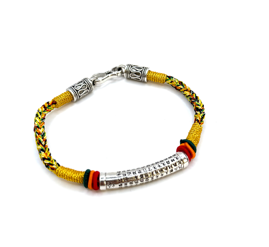 Pago seguro SSLEsta pulsera budista trenzada es un joyal espiritual único, adornada con un tubo metálico grabado con el Prajñāpāramitā Sūtra – el Sutra de la Perfección de la Sabiduría.