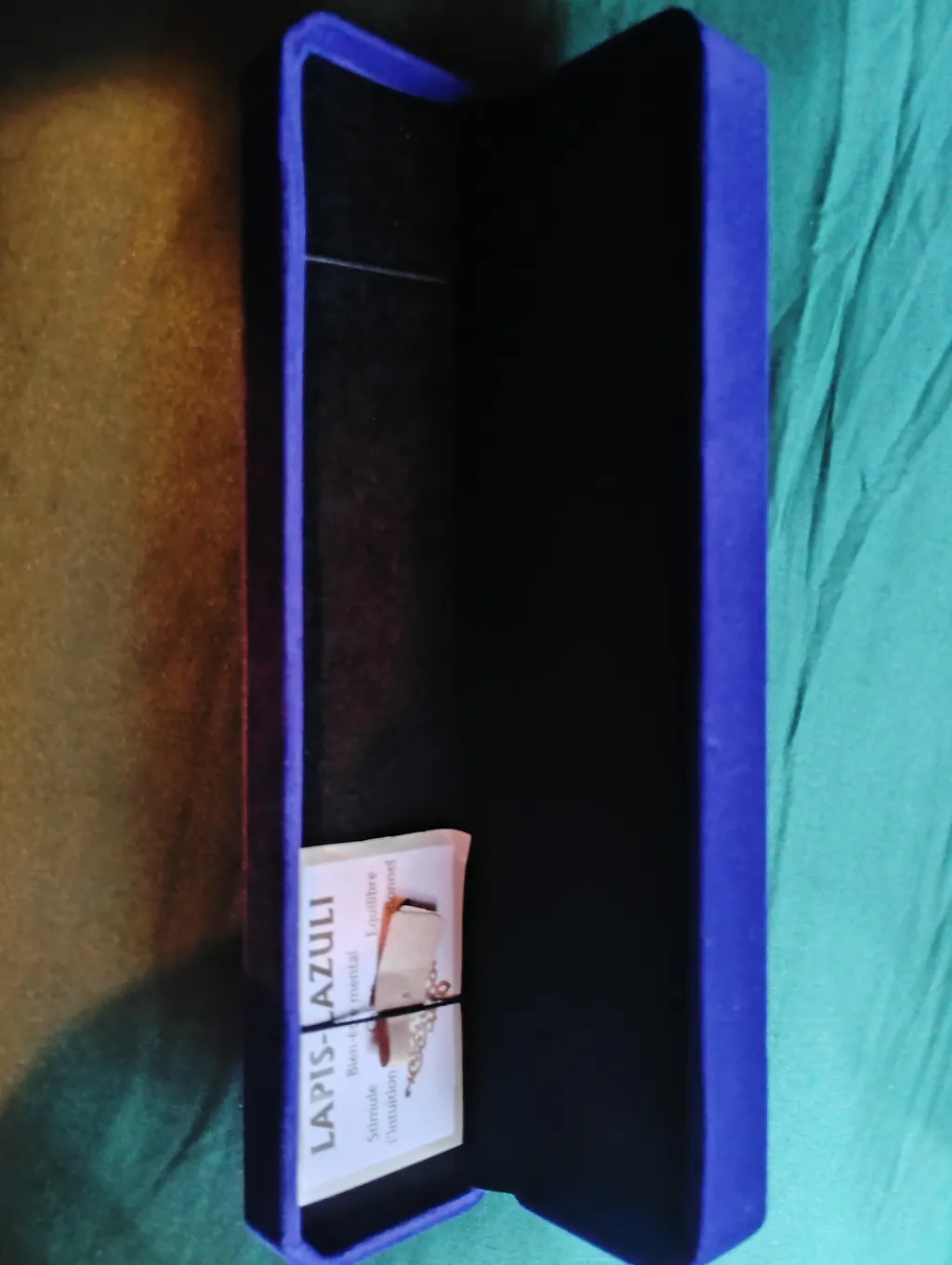 Para purificar su brazalete de lapislázuli, prefiera métodos suaves: la fumigación con salvia, palo santo, las vibraciones de un cuenco tibetano o el reposo sobre un montón de cuarzo. Se desaconseja el contacto prolongado con el agua para preservar tanto la piedra como la plata 925.