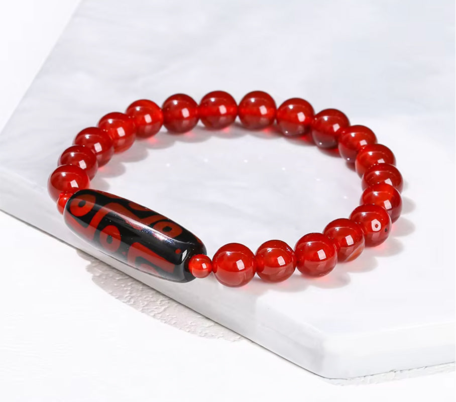 Al combinar la energía ardiente de la ágata roja con el poder espiritual del Dzi de 9 ojos, esta pulsera se convierte en un verdadero catalizador de éxito, protección y energía positiva.