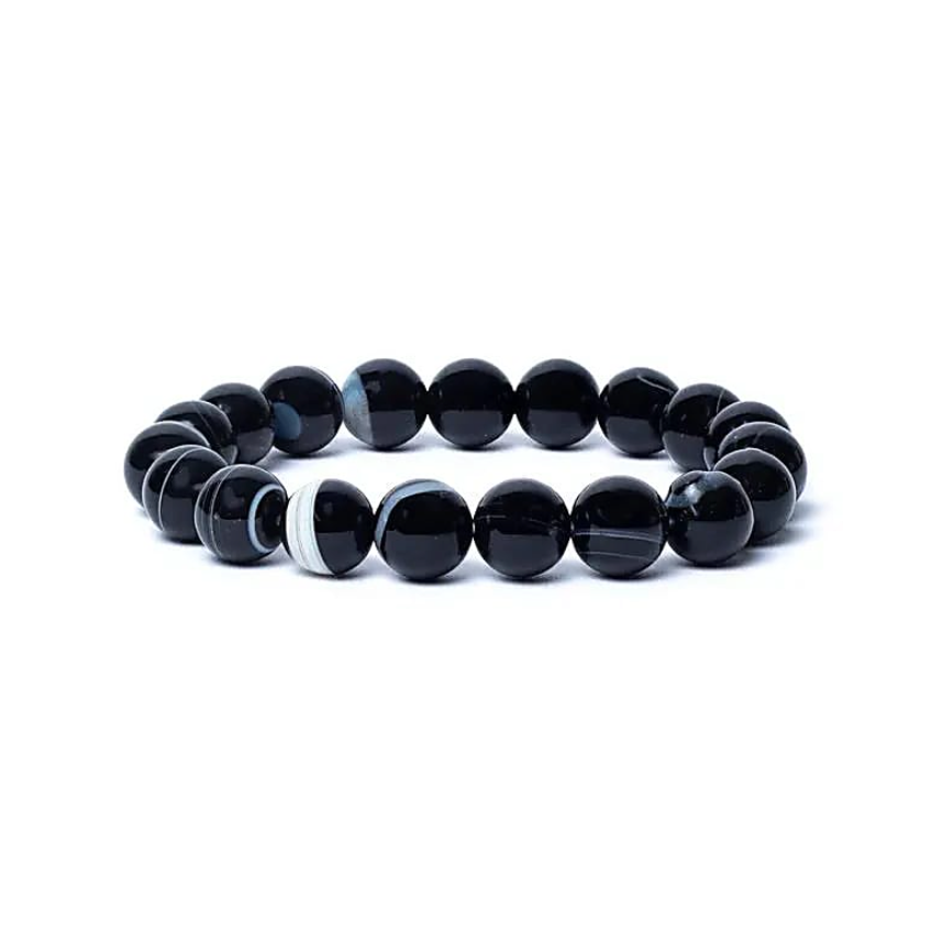 Pago seguro SSLEsta pulsera de goma está compuesta por cuentas de Ojo de Shiva (o Hakik Sulemani) cuidadosamente pulidas, con un diámetro de 1 cm. Cada cuenta presenta sutiles variaciones de tonos negros y blancos en un patrón circular hipnótico, evocando la forma de un ojo místico. Su diseño sobrio y elegante la convierte en una joya tanto espiritual como elegante.