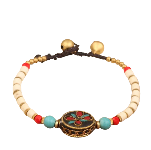 - Lata dorada: Símbolo de pureza y conexión con la espiritualidad budista, amplifica las energías positivas de la pulsera.