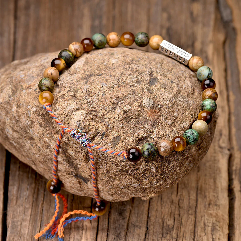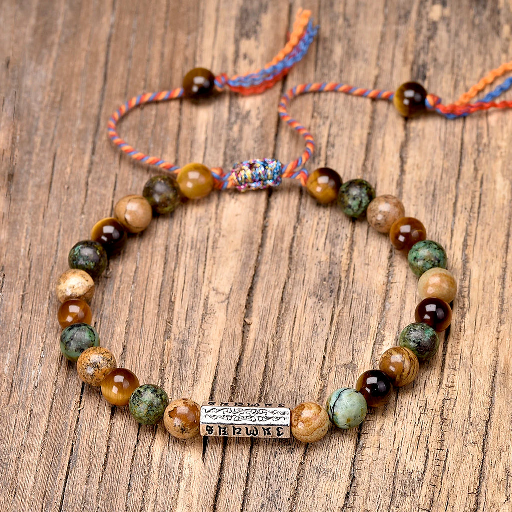 meta_description: Sumérgete en un océano de serenidad y fuerza interior con nuestra Pulsera Tibetana Mantra - Ojo de Tigre. Al llevar esta pulsera tibetana, fortalecerás tu confianza y alcanzarás tus objetivos espirituales. Tamaño ajustable. Joyería tibetana para hombre y mujer. Envío gratuito en Francia Metropolitanaproduct_type: Pulseras tibetanas de piedras naturales