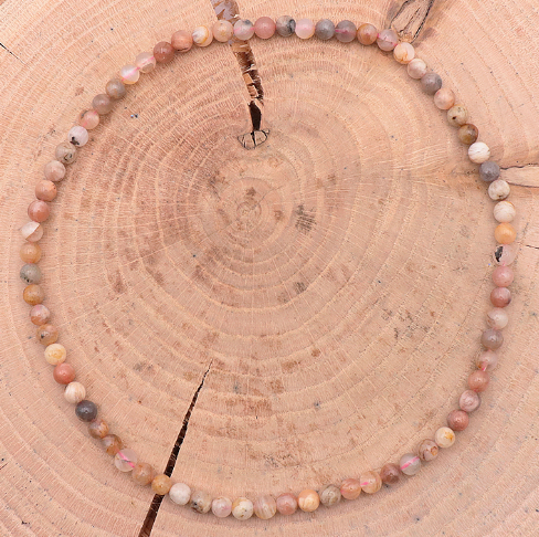 Compuesto de perlas redondas de 6 mm en piedra de luna natural de calidad AB, este collar revela sutiles reflejos irisados que varían según la luz. Cada perla posee sus propias tonalidades y inclusiones naturales, lo que hace que cada collar sea único.