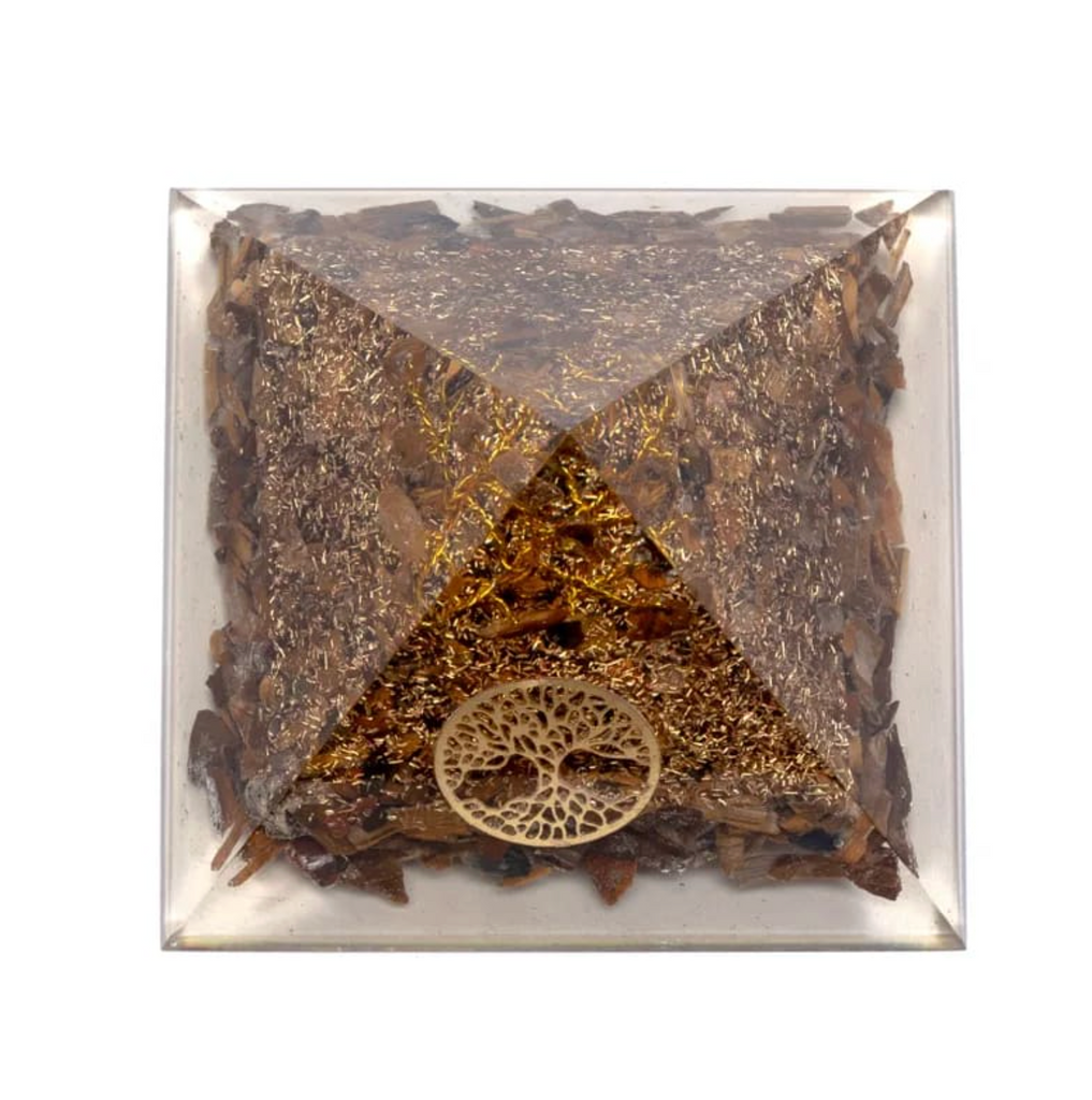 Paiement Sécurisé SSLCette pyramide orgonite en œil de tigre ornée du symbole sacré de l’Arbre de Vie est un puissant générateur d’énergie de protection et d’équilibre.