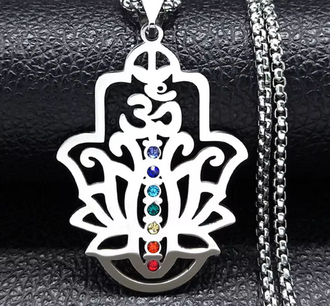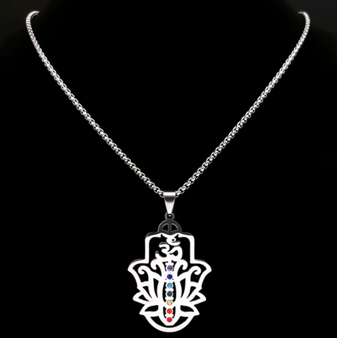 Esta colgante Om 7 Chakras Flor de Loto es mucho más que un joyero. Es una guía espiritual que te acompaña para equilibrar tu energía y realzar tu atuendo con elegancia y significado.