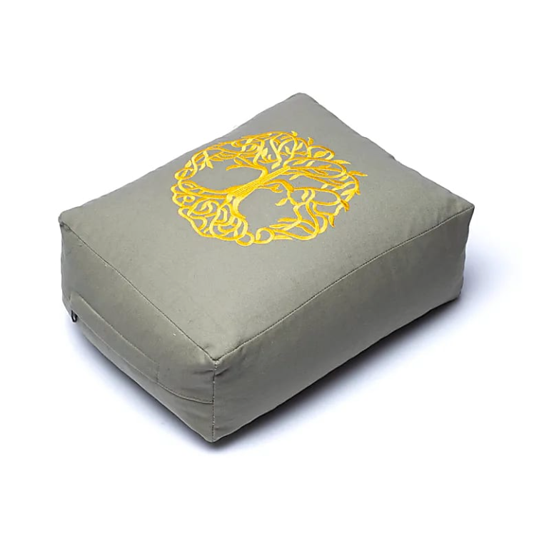 Disfrute de un momento de serenidad profunda gracias a esta almohadilla de yoga rectangular de algodón orgánico, adornada con el símbolo universal del Árbol de la Vida. Ideal para apoyar la espalda, el cuello, las piernas o el pecho durante las posturas de yoga, este cojín denso y firme promueve el alineamiento, la relajación muscular y la presencia plena.